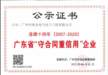 | 1998年9月 ● | 广州市高安电气电子工程有限公司成立 |